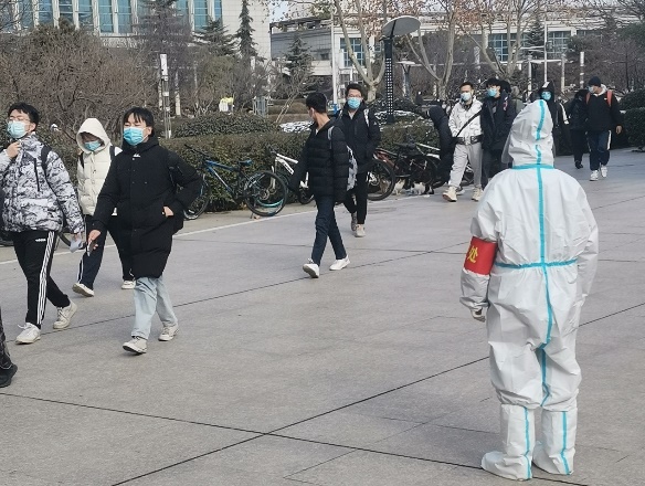 在公司中,她毅然决定奔赴校园“抗疫一线”,长期负责12号及13号公寓楼的核酸检测,在岗期间主要负责分发一次性采样器和维护现场秩序,每日到岗工作已经成了她的常态。即使深冬寒风入骨,但吹不灭内心灼烧的信念,在她心中,正是这份信念支撑她站着这里的每一分钟,延续了持久投入此次抗疫志愿活动中的动力,凝聚了攻坚克难与疫情战斗到底的决心。