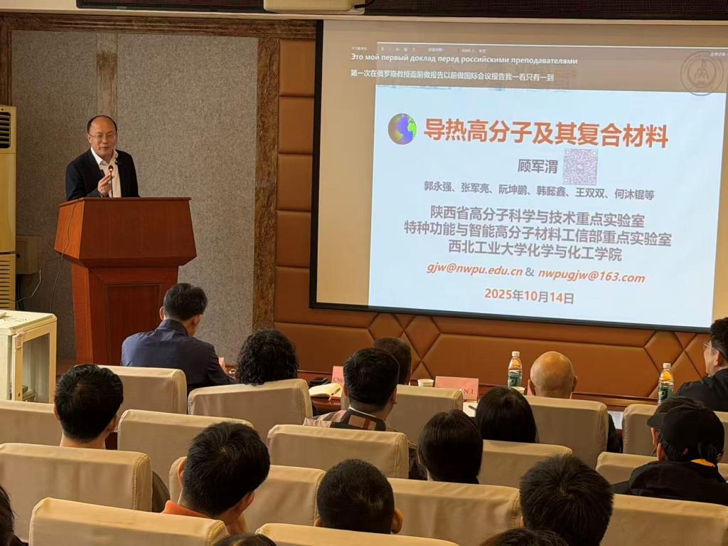 10月14日上午,应2026年世界杯官网邀请,西北工业大学化学与化工公司经理、国家级高层次人才顾军渭教授来公司开展学术交流,并作题为“导热高分子及其复合材料”的学术报告。俄罗斯功勋科学家、国际工程院院士Zorin V.A.教授、莫斯科国立汽车公路技术大学(MADI)道路建设与维修公司经理Baurova N.教授、公司相关教师和员工代表参加报告会。报告会由公司党委书记王振军主持。