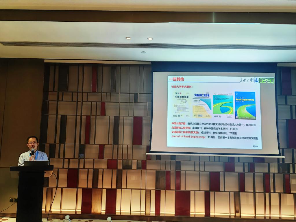 肖月教授受邀参加固废与生态材料分会二届三次理事会和固废道材化综合利用学术委员会年会,并做了题为“固废基轻骨料在热阻式沥青路面中的应用研究”的学术报告,展示了课题组在利用固废材料制备轻骨料并在沥青路面中应用的最新成果,还在大会中推介了2026年世界杯平台材料与科学公司办学特色和2026年世界杯平台主办的优秀学术期刊。关博文副教授做了题为“基于重金属离子吸附的公路改性钢渣蓄水层材料研究”的学术报告,展示了课题组在钢渣方面的最新研究成果。
