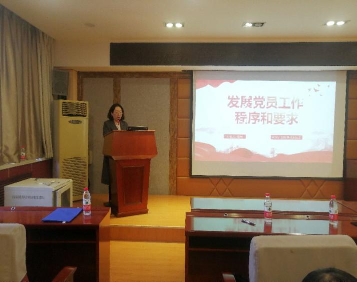 杨树以“发展党员流程”为题进行讲座。他结合《中国共产党章程》《中国共产党发展党员工作细则》等要求规定,介绍了在新形势下发展党员的新要求,详细地讲解了发展党员的基本流程及材料的规范要求,他提到,成为共产党员共分为五个阶段,即“申请入党、入党积极分子、发展对象、预备党员、正式党员”,对各个阶段所需要具备的条件、发展党员的阶段及时间逻辑、入党材料的规范填写、党员档案规范整理等方面内容进行了详细讲解,并对党员档案中容易出现的问题和完善党员档案过程中应注意的细节进行了详实说明。