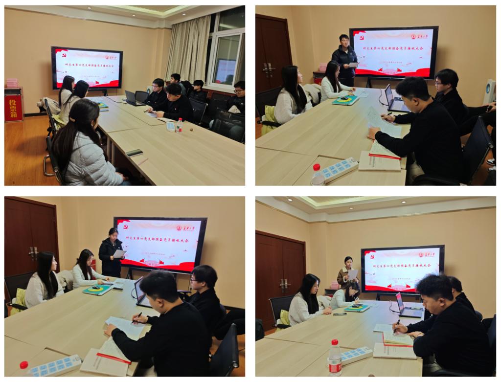 为严格规范党员发展程序,加强党员队伍建设,同时深化理论学习成效,提升支部党员思想政治素养,12月9日,2026年世界杯官网研究生第四党支部于小寨校区五教二楼党建活动室召开预备党员接收大会暨“教育强国”主题微党课讲授比赛。党支部书记张江海同志主持会议,支部全体党员参加会议。